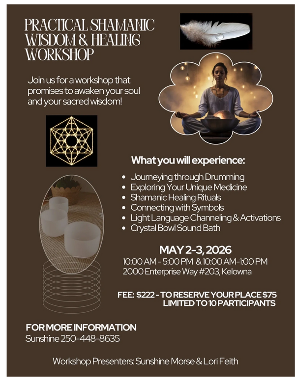 Come join us to experience shamanic drumming journeys & practical shamanic wisdom that can be integrated into your daily life. Along with receiving Light Language Channeling and activations from Lori Feith.